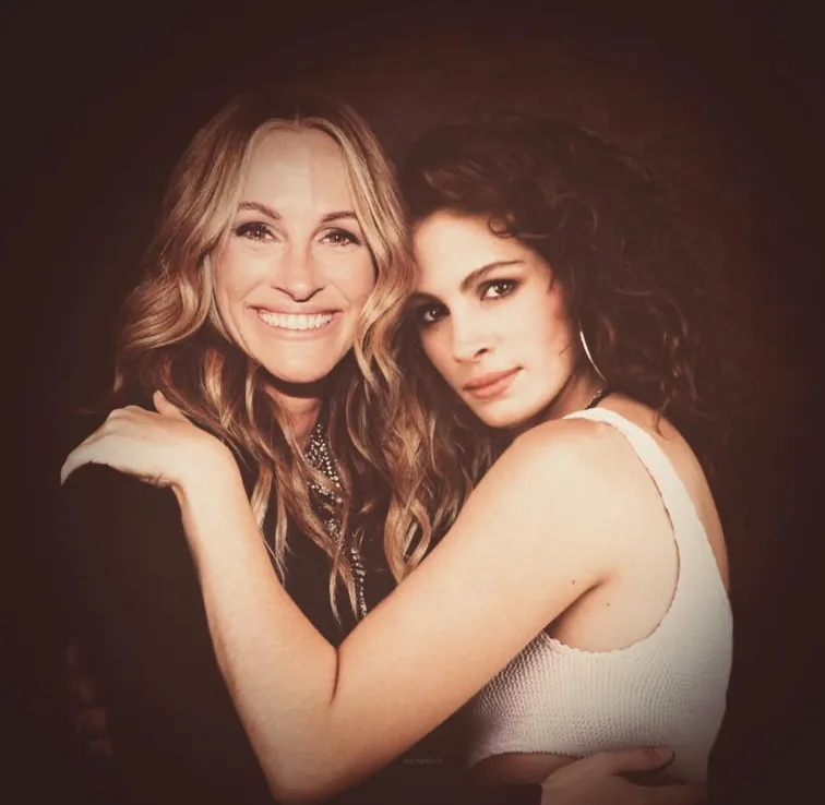 That continuity was the point of a playful art project that made waves online: Dutch artist Ard Gelinck’s “Then & Now” collages, which sit famous figures beside their younger selves. The Julia entry lands with a small shock of recognition—there she is twice, the past and the present sharing the same frame and, more importantly, the same spark. Gelinck’s caption—“Happy Birthday to Pretty Woman Julia Roberts”—was a birthday wish, but the image said more. It wasn’t trying to erase years; it celebrated the fact that a through-line can survive them.