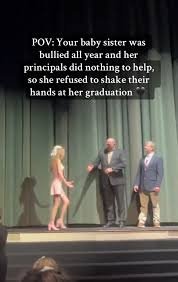 Her sister Sarah, who filmed the moment, explained the move in a caption that quickly struck a chord: “POV: Your baby sister was bullied all year, and her principals did nothing to help, so she refused to shake their hands at her graduation.”