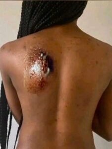 A disturbing photo has gone viral online showing a woman with a large, raw, and possibly infected wound on her back. The wound appears dark, blistered, and oozing, sparking both concern and debate across social media platforms. While many viewers were horrified by the image itself, medical experts emphasize that it highlights an important — and very real — health issue: skin infections and untreated wounds can quickly turn life-threatening if ignored.