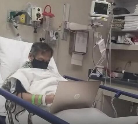His daughter, Sandra Venegas, shared the powerful story and accompanying photo in a heartfelt Facebook post that has since gone viral. In the image, her father is lying in a hospital bed with a blanket pulled up to his chest, a laptop resting on his lap, quietly working as doctors conducted tests around him.