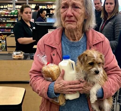 I chose the shortest checkout line and soon found myself standing behind a small, elderly woman. She was visibly frail, wrapped in a coat so worn the cuffs were nearly frayed, her back curved as if burdened by years of hardship. As she placed her two humble items—a loaf of cheap bread and a gallon of milk—on the conveyor belt, the reality of her struggle became painfully apparent. The male clerk, Ethan, with tired eyes, tallied the low total. She opened a tiny, trembling wallet and began counting out coins and wrinkled bills, only to pause, her voice barely a whisper: “I… I’m short. I am so sorry.”