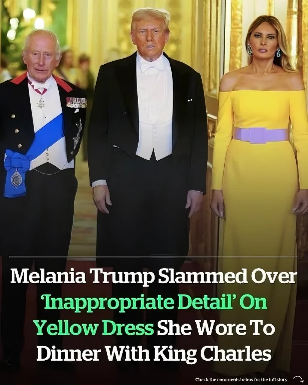 Melania Trump has been slammed after online users spotted an “inappropriate detail” on the yellow dress she wore to dinner hosted by King Charles and Queen Camilla.
