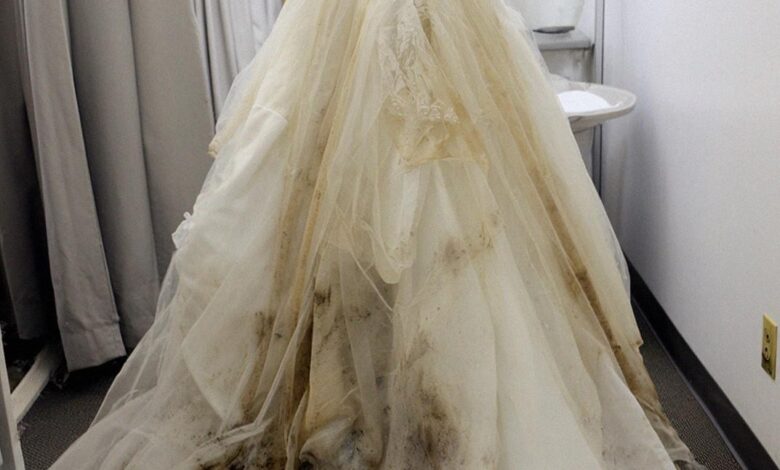 I walked into the bridal room to find my dress ruined. A dark brown smear streaked across the skirt. The lace at the waist ripped deliberately. My heart sank.