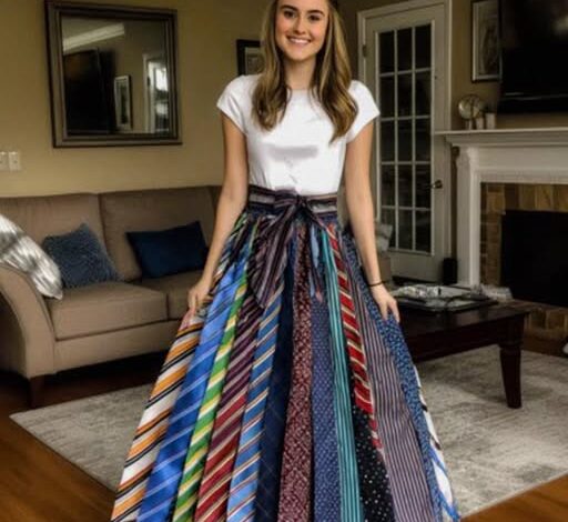 Prom was creeping up, though it felt like a cruel joke. What was there to celebrate? One night, sitting cross-legged on the floor with that bag of ties, a thought caught in my chest: If he can’t be there with me, maybe I can take him along. I didn’t know how to sew, but YouTube did. I learned by stabbing my fingers more than once and unpicking a thousand crooked seams. Slowly, those ties became something new—a skirt. Each one a piece of him: the paisley from his big interview, the navy one from my middle school recital, the silly guitars from every disastrous Christmas breakfast. When I finally zipped it up, the silk shimmered, and for the first time in months, I felt warmth instead of loss.