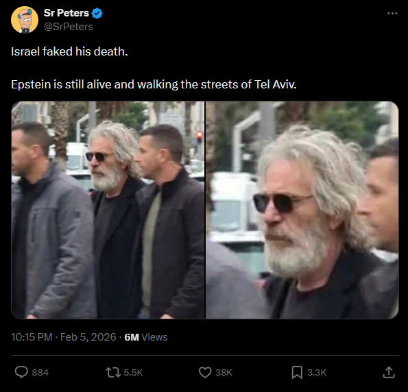 “Israel faked his death. Epstein is still alive and walking the streets of Tel Aviv”, claimed one X post that has had nearly five million views.