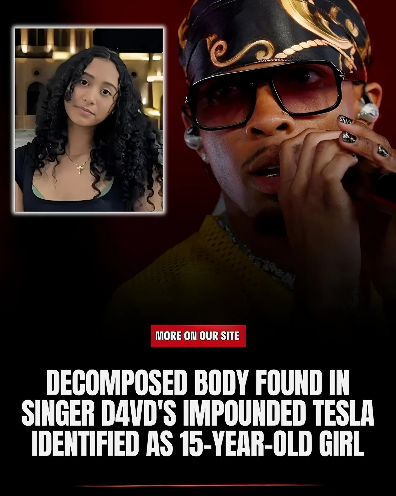 Celebrity News WHOA Decomposed Body Found In Singer D4vd’s Impounded Tesla Identified As 15-Year-Old Girl! ByAadmin September 18, 2025 Watch video below: https://hw-videos.worldstarhiphop.com/u/vid/2025/09/AJO0wcdHFSuG.mp4